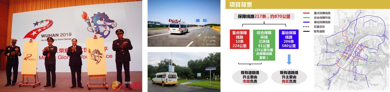 第七屆世界軍人運動會于2019年在武漢舉行,城建委負責武漢軍運會保障線路路面整治相關導則和方案編制工作。路源檢測公司承擔10條重點保障線路、三環線綜合保障線路、基礎保障線路路面檢測及附屬設施調查服務,合計單車道里程超過2000公里。