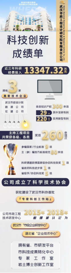 本次入選“科改示范企業”名單得益于武漢市政設計院多年來對科技創新工作的高度重視一起來看看我們的科技創新成績單。