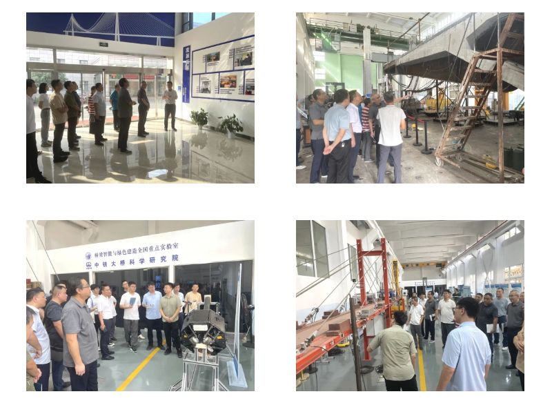 ? ? 在橋梁智能與綠色建造全國重點實驗室,大家參觀了實驗室的科研試驗和研發成果,了解了實驗室的發展歷程、研究方向和研究成果等。重點觀摩了正在進行的足尺試驗——大跨中央索面混凝土斜拉橋拼寬利用關鍵技術,試驗采用懸臂鋼結構梁拼寬結合LUHPC橋面鋪裝更換的方案,為橋梁拼寬設計提供了一種全新的解決思路和技術方案;詳細聽取了基于UHPC新材料的相關試驗成果、研究結論和應用方向,對UHPC在橋梁工程的運用進行了討論,實驗室還給予了技術指導和建議;深入了解了檢測機器人、建造智能裝備、監測智能傳感器等設備和產品的在橋梁建造和運維中的運用情況,著重關注了部分設備、產品的迭代過程和性能參數,拓寬了對橋梁智能檢測、智能建造和智慧運維的認識。