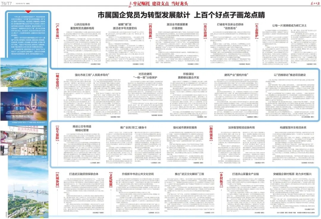 ? ? 今年以來,在市委組織部指導下,市政府國資委在武漢市屬國企廣泛開展“我為轉型發展獻一策”活動,取得熱烈反響。征集活動啟動后,武漢市政院積極響應城投集團的號召,圍繞加快推動“三個優勢轉化”,重塑新時代武漢之“重”,努力在支點建設中當好龍頭、走在前列,公司本部及所屬各單位黨員紛紛為城市發展出謀劃策、貢獻智慧,提出了一些具有創新性、前瞻性和可操作性的意見建議。6月27日,市政府國資委通過《長江日報》公布了在市屬國企中征集到的20個“金點子”,其中武漢市政院有1個入選。