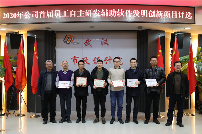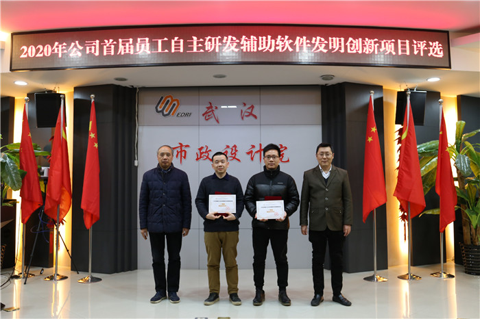 經過精彩的匯報和評委們的認真評價,來自交通研究院張燦的《武漢市政規劃設計平臺》和來自荊門分公司劉盾的《CAD輔助設計軟件》獲得了本次比賽的一等獎,二、三等獎也各有歸屬,公司領導為獲獎項目頒獎,并與軟件開發者合影留念。