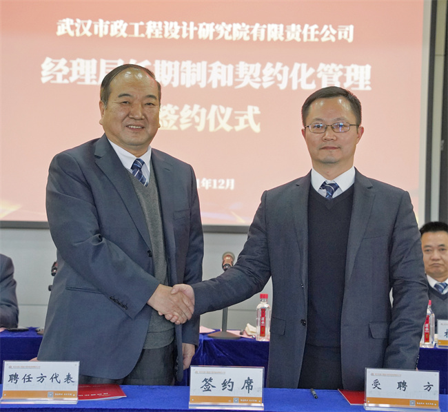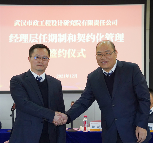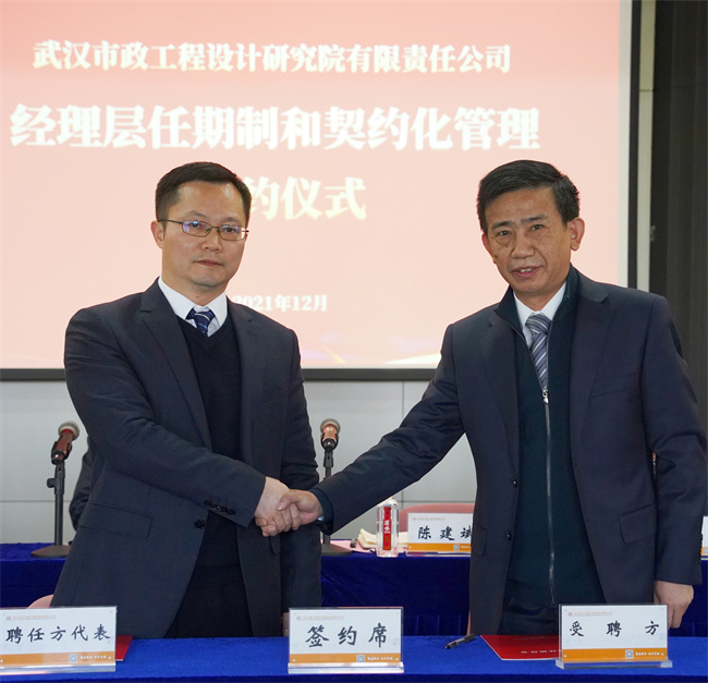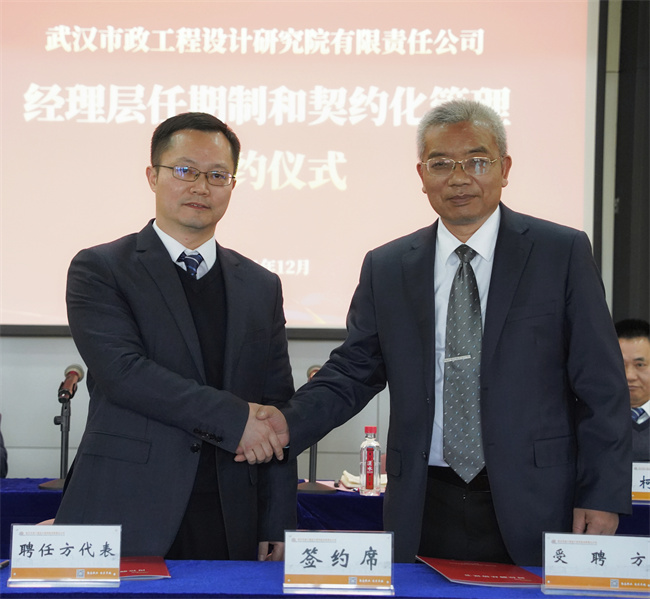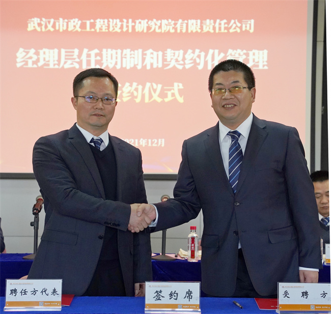 為貫徹落實黨中央、國務院關于實施國企改革三年行動的重大決策部署,落實市城投集團公司關于加快推進所屬企業經理層任期制和契約化管理的工作要求,12月20日下午,武漢市政設計院成功舉行公司及所屬企業經理層任期制和契約化管理簽約儀式,標志著武漢市政設計院在切實抓好國企改革三年行動和三項制度改革工作中邁出關鍵一步。公司領導、總經理助理、中層副職以上行政管理人員參加簽約儀式。
