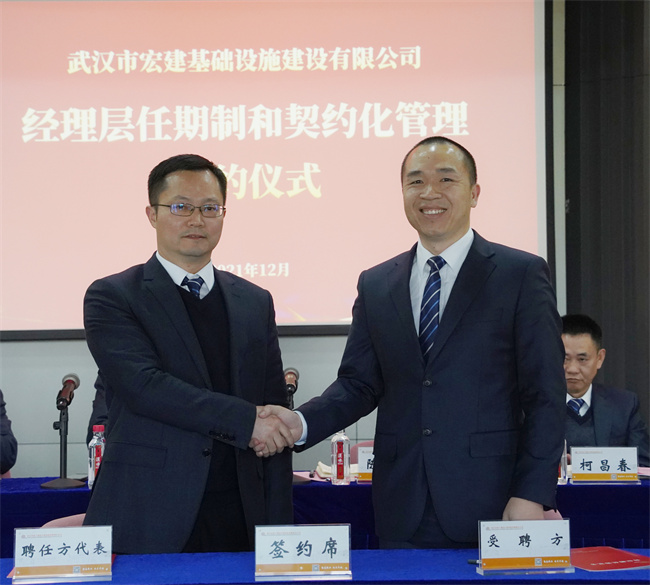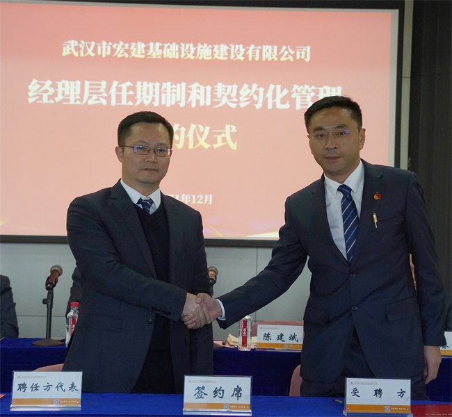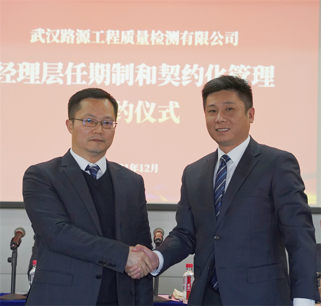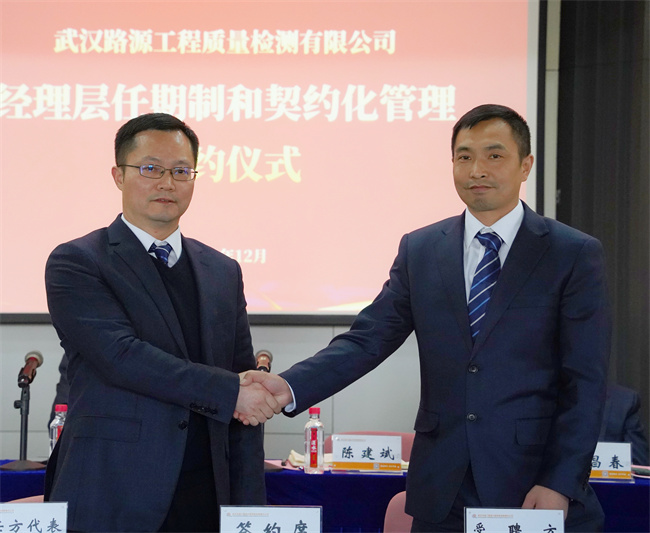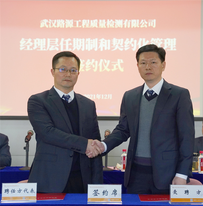 隨后,公司黨委書記、董事長武興治與黨委副書記、總經理陳建斌簽署崗位聘任協議書,陳建斌分別與公司經理層成員和所屬武漢路源工程質量檢測有限公司、武漢市宏建基礎設施建設有限公司經理層成員簽署崗位聘任協議書。