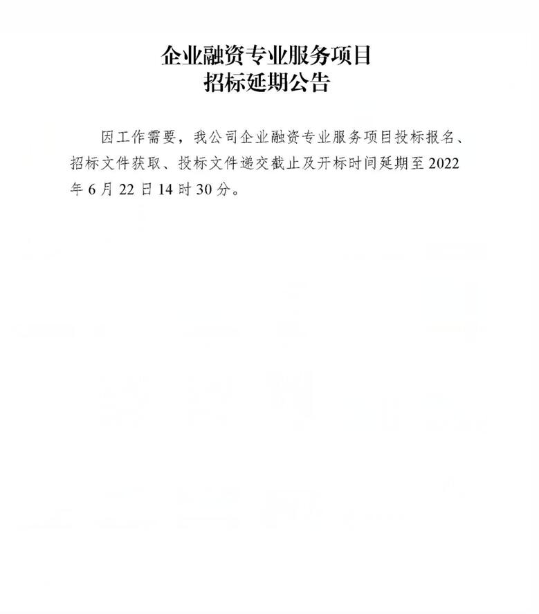 企業(yè)融資專業(yè)服務(wù)項(xiàng)目招標(biāo)延期公告