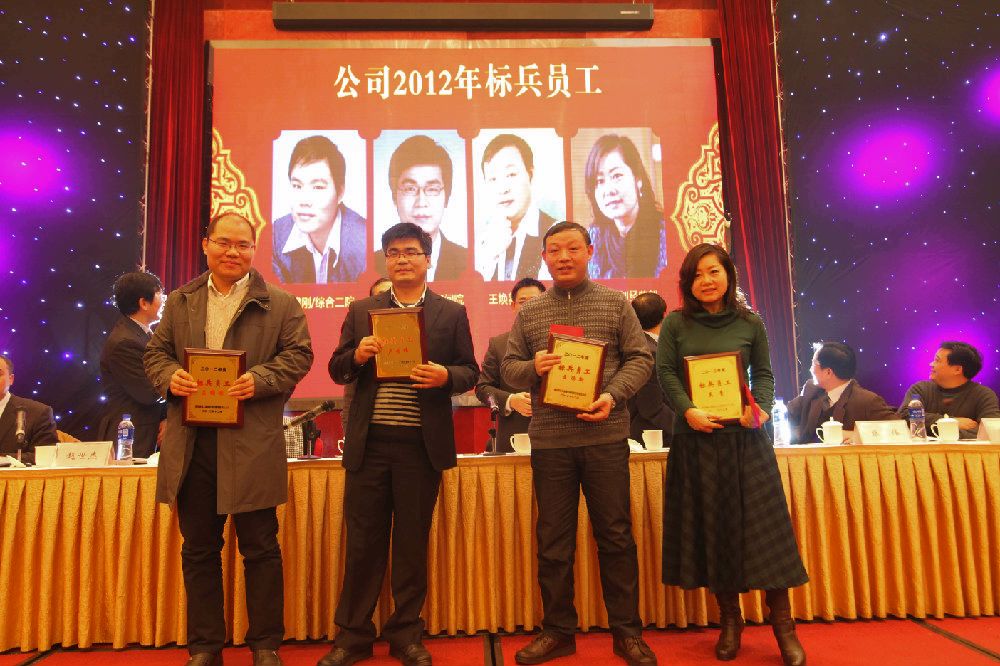 ??? 公司黨委書記蔡輝同志宣讀了對先進集體、優秀員工和標兵員工的表彰決定,以及對公司2012年科技成果獲獎項目的獎勵通知。2012年,這些獲獎的部門和員工付出了巨大的努力,創造了優異的成績,他們也是公司過去一年發展和奮斗的縮影。