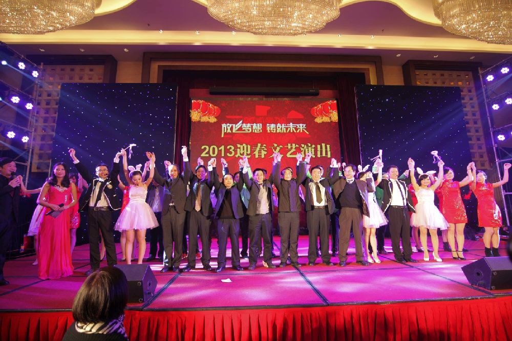 ??? 總結表彰大會結束后,一臺異彩紛呈的迎春文藝演出拉開了帷幕。喜氣熱鬧的《東方鼓韻》,寓意著新一年的奮進與收獲;頗具詼諧意味的舞蹈《江南STYLE》,引得現場爆發出陣陣掌聲和笑聲;三曲經典老歌匯成的情歌串燒,則喚起了現場觀眾對經典的美好回憶。文藝演出在《新年快樂》的歌聲里落幕。