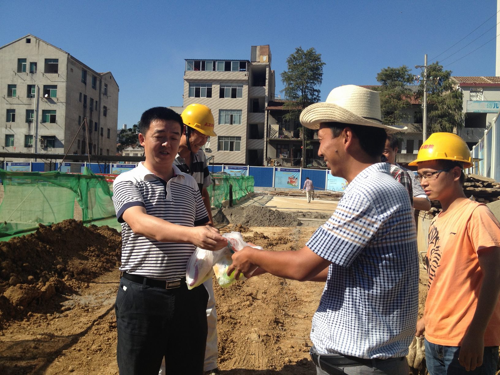 ??? 近段時(shí)間,武漢市出現(xiàn)了連續(xù)高溫天氣,但為了保障所承擔(dān)項(xiàng)目的按時(shí)推進(jìn),公司監(jiān)理、勘測、測試等外業(yè)人員仍然在烈日下堅(jiān)守工作崗位。8月16日,公司黨委書記蔡輝、副總經(jīng)理趙世杰、總經(jīng)理助理胡軍等一行在監(jiān)理公司、勘測設(shè)計(jì)院負(fù)責(zé)人的陪同下,對部分工地進(jìn)行了走訪慰問,為高溫下堅(jiān)持工作的員工送上一份清涼。