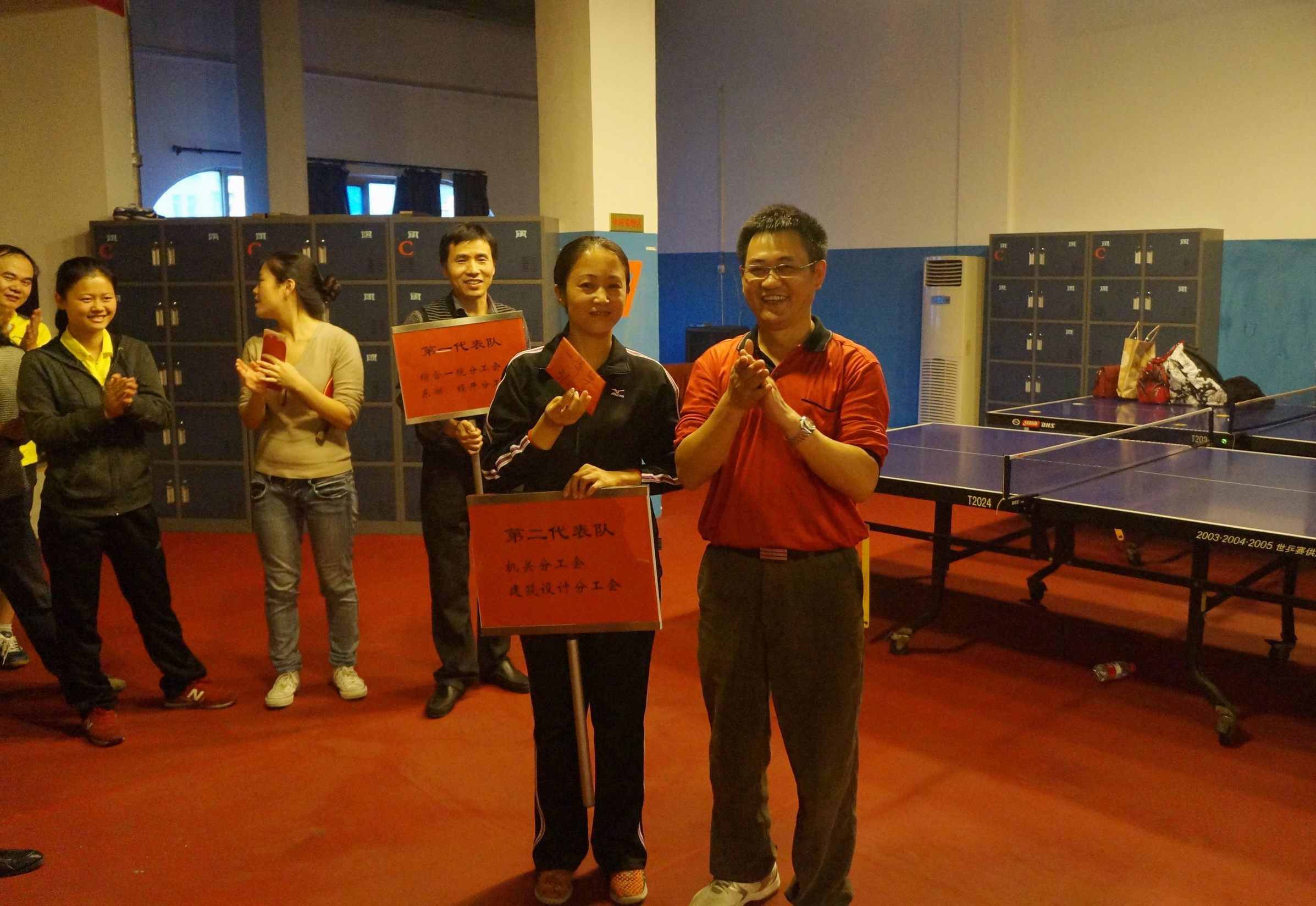 ??? 經(jīng)過(guò)激烈的角逐,由姚華總經(jīng)理領(lǐng)銜的機(jī)關(guān)分工會(huì)、建筑設(shè)計(jì)分公司分工代表隊(duì)獲得了冠軍;蔣樂(lè)副總經(jīng)理兼總工程師帶隊(duì)的綜合設(shè)計(jì)一院和東湖設(shè)計(jì)院、經(jīng)開(kāi)設(shè)計(jì)院聯(lián)合分工會(huì)代表隊(duì)獲得了亞軍。公司領(lǐng)導(dǎo)為獲獎(jiǎng)代表隊(duì)頒獎(jiǎng)并合影留念。