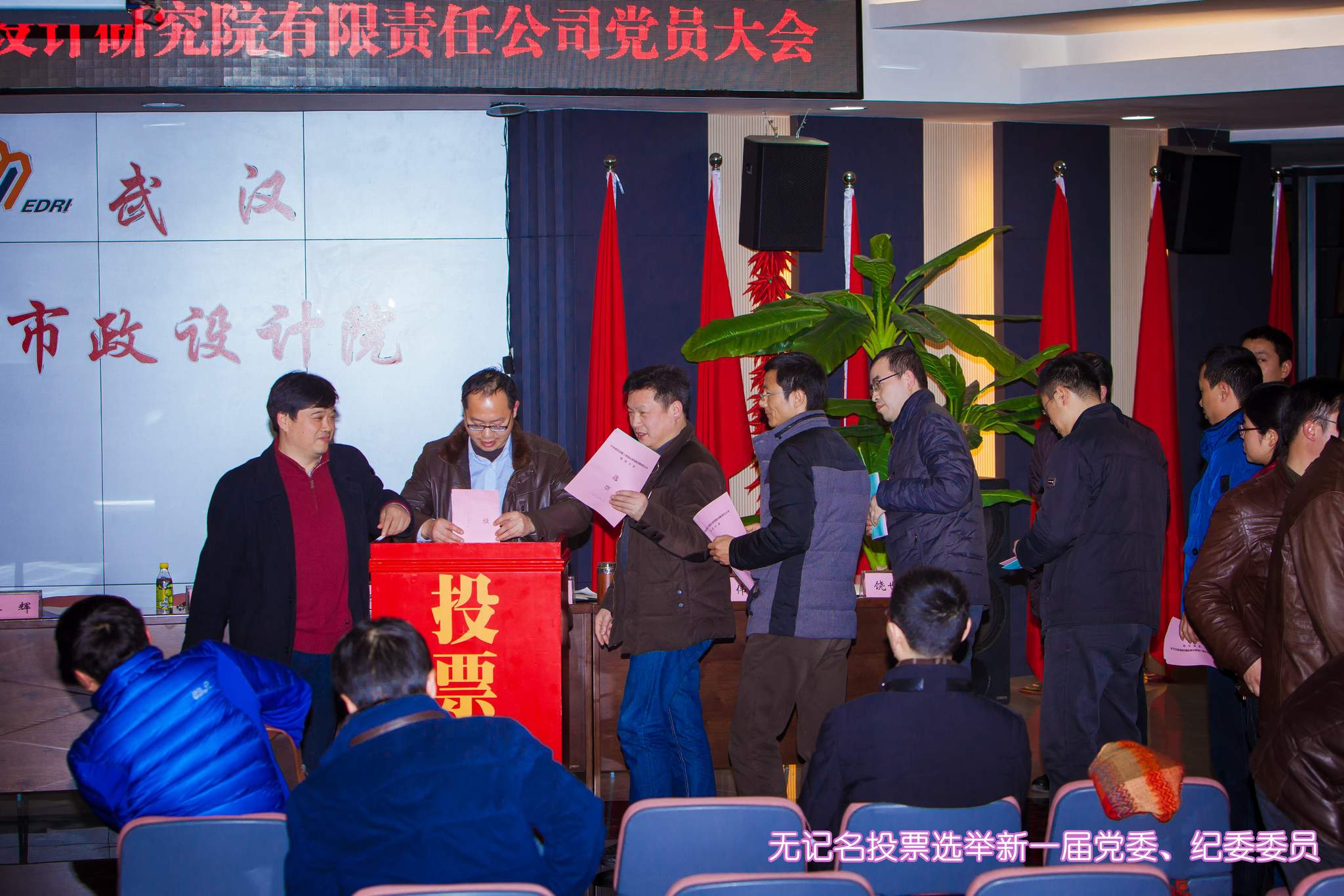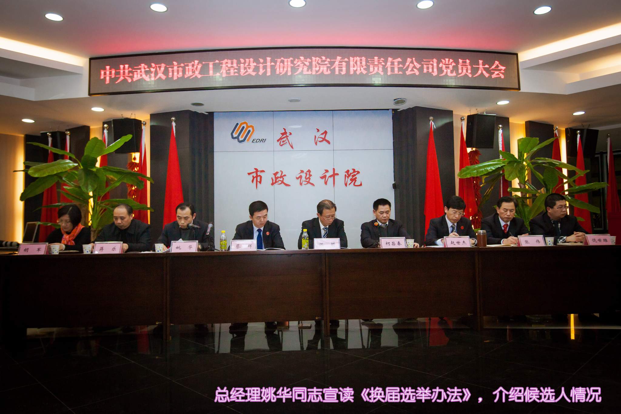 ??? 1月23日,公司召開黨員大會,選舉產生了新一屆中共武漢市政工程設計研究院有限責任公司委員會、紀律檢查委員會。武漢市城鄉建設委員會機關黨委專職副書記陳耕同志到會指導,公司200余名黨員參會,會議由公司董事長、黨委副書記柯昌春同志主持。