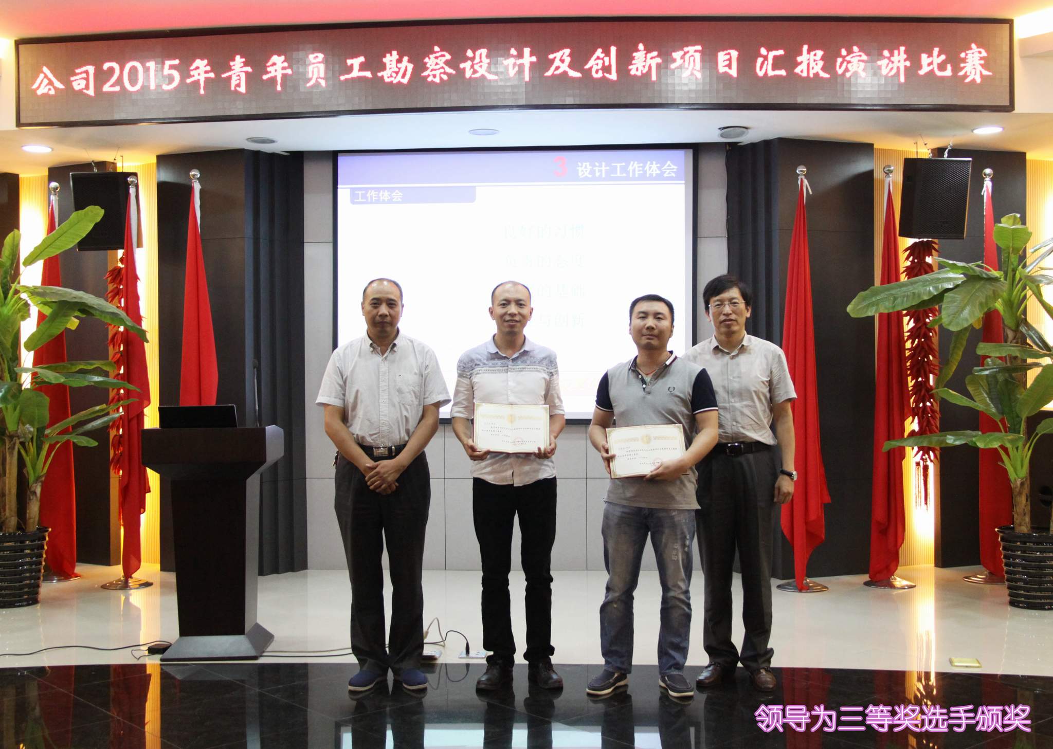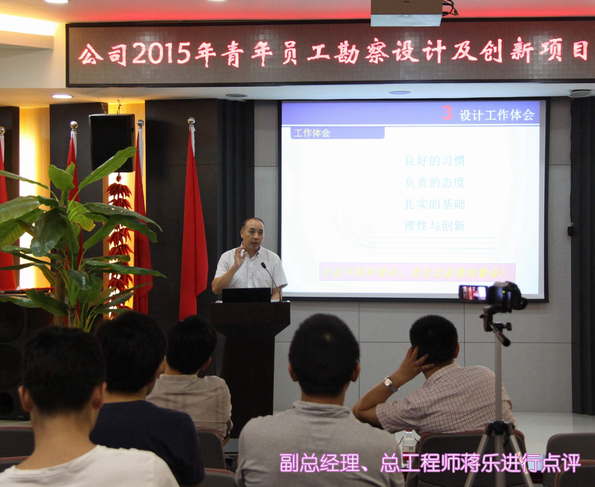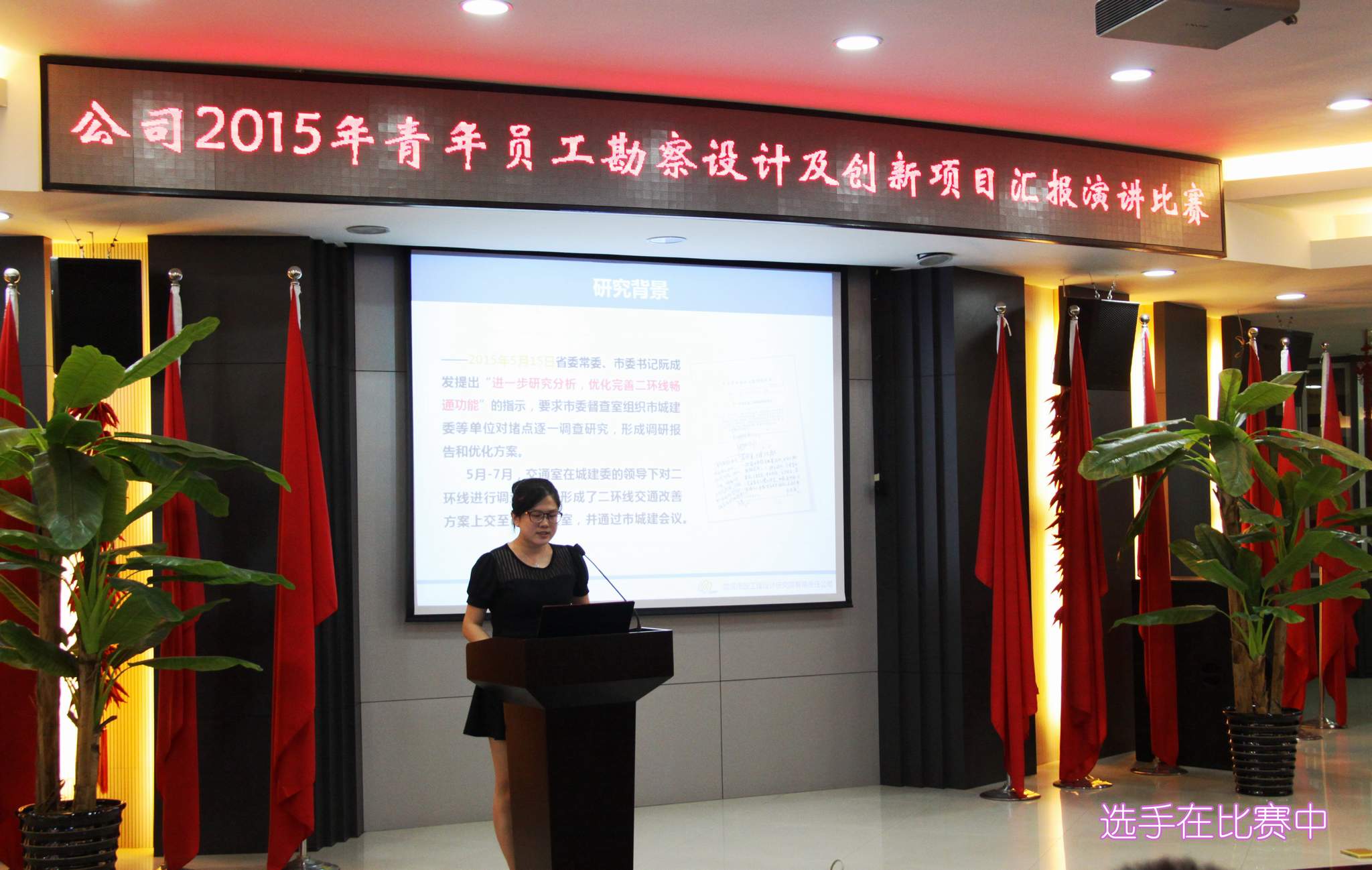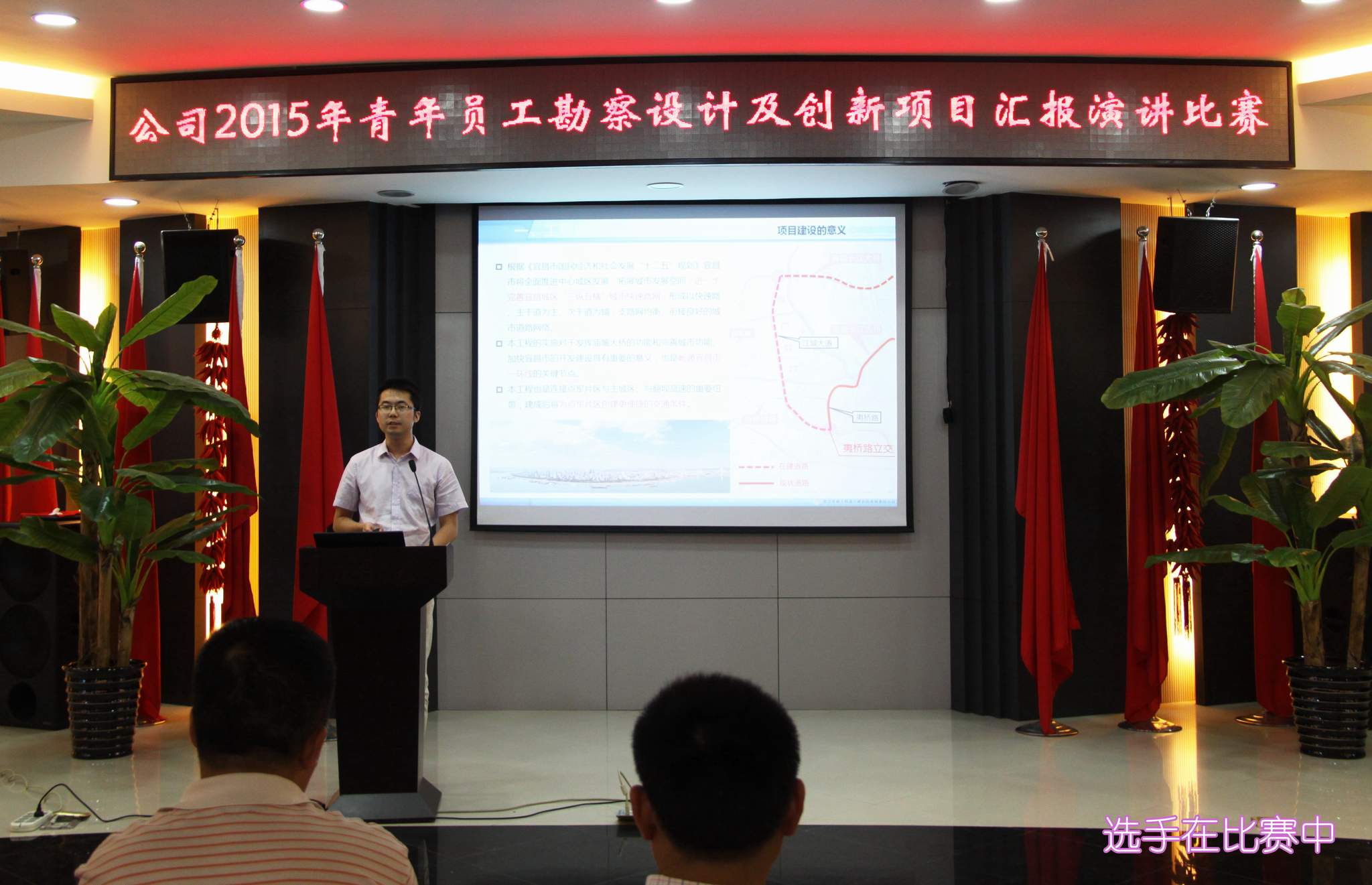 ??? 9月1日,一場以“創新”為主題的勘察設計及創新項目匯報演講比賽在公司二樓會議室隆重舉行。參加本次演講比賽的9位青年員工從各部門、各專業的精心選拔中脫穎而出,具備了一定的技術能力和演講水平,是青年員工中的佼佼者。 本次比賽吸引了近百名員工參加,由6名評委組成的評委會將根據演講人的綜合表現進行評分,并以此為依據確定名次。公司領導、相關部門負責人出席了本次活動。