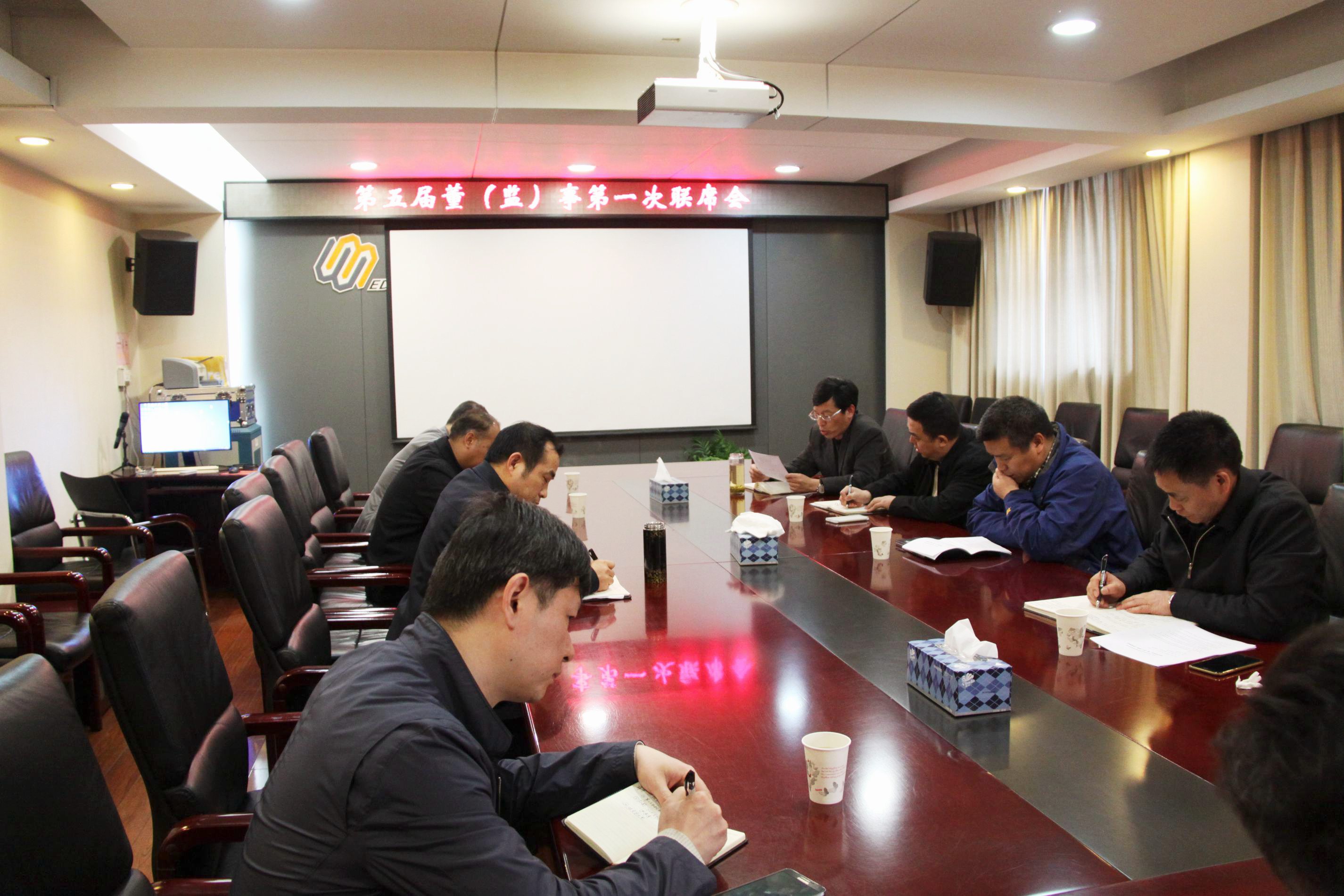 ??? 4月7日下午,公司在三樓會議室召開第五屆董(監)事第一次聯席會,就新一屆董事會、監事會等相關事宜進行了討論,第五屆職工持股會理事會理事長趙世杰主持會議,市城建委政治處主任楊建春到會指導。