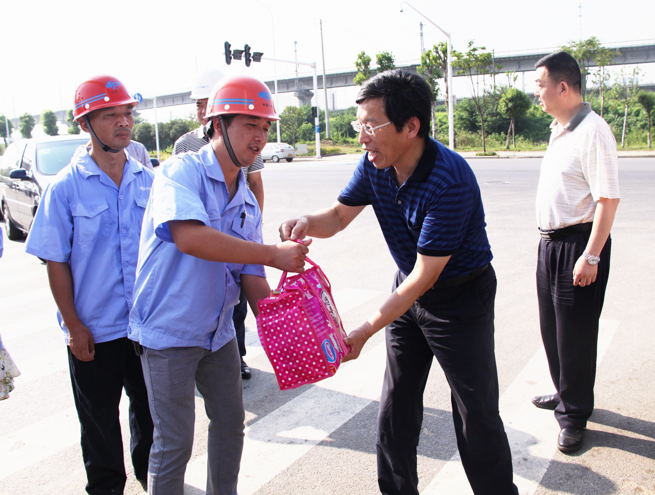 ??? 蔡輝書記一行先后來到城華路、漢陽海綿城市示范區(qū)、黃家湖污水處理廠等工地現(xiàn)場(chǎng),為堅(jiān)守在現(xiàn)場(chǎng)的員工們送上消暑慰問品。公司領(lǐng)導(dǎo)聽取了現(xiàn)場(chǎng)負(fù)責(zé)人的工作情況匯報(bào),詳細(xì)詢問了員工們的工作和生活情況,并叮囑他們注意高溫天氣下的工作安全。同時(shí)要求相關(guān)部門負(fù)責(zé)人合理安排工作時(shí)間,做好人員調(diào)配,制定防暑降溫工作預(yù)案,保證一線員工的身體健康。