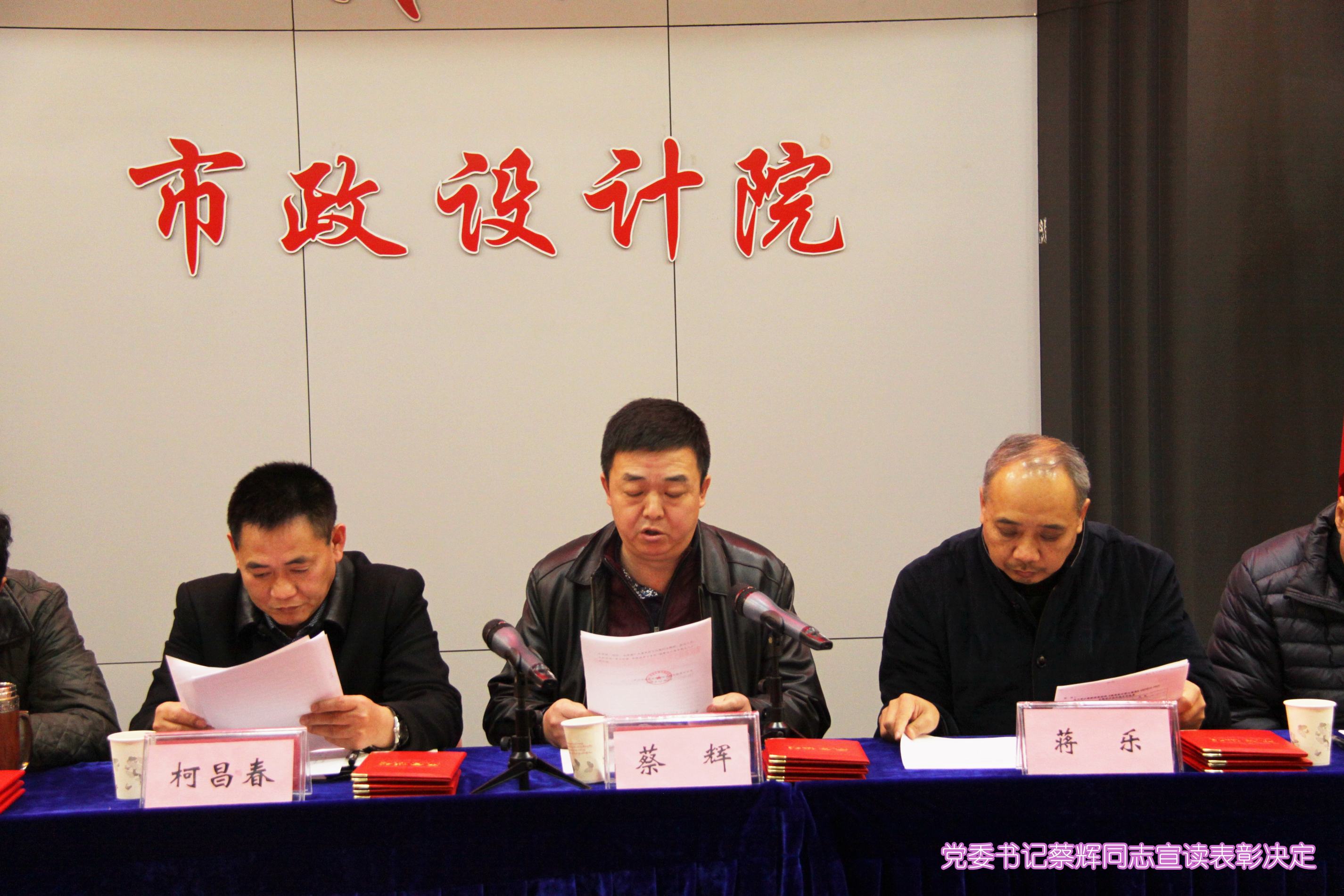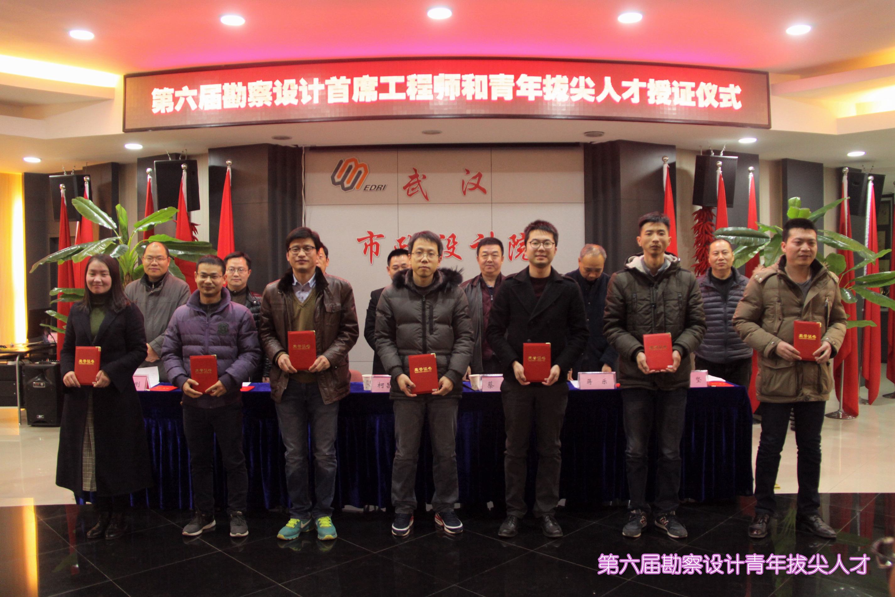 ??? 授證儀式由副總經理、總工程師蔣樂同志主持,黨委書記蔡輝同志宣讀了授予“第六屆勘察設計首席工程師、青年拔尖人才”榮譽稱號的決定,隨后,他們順次走到主席臺前,從公司領導手中接過了榮譽證書,會場上響起熱烈掌聲,向他們表示祝賀。