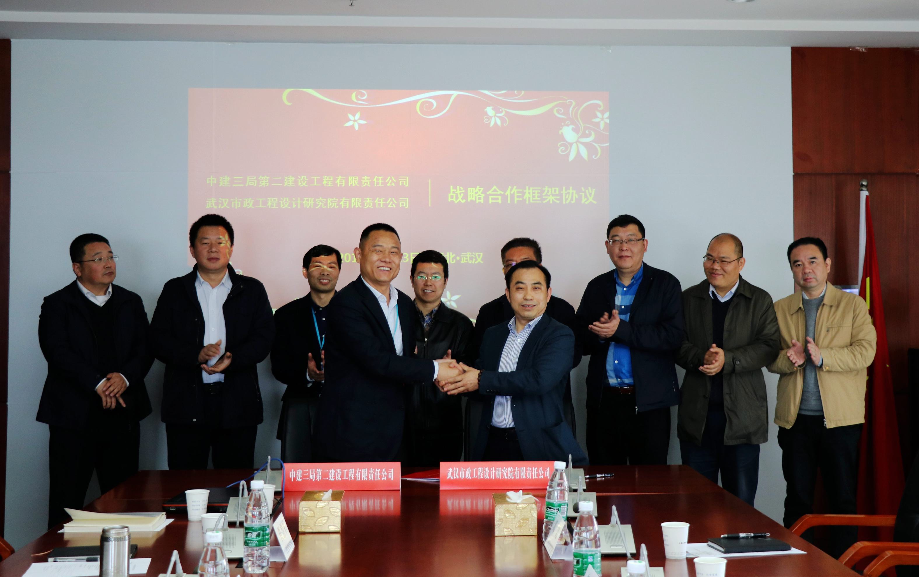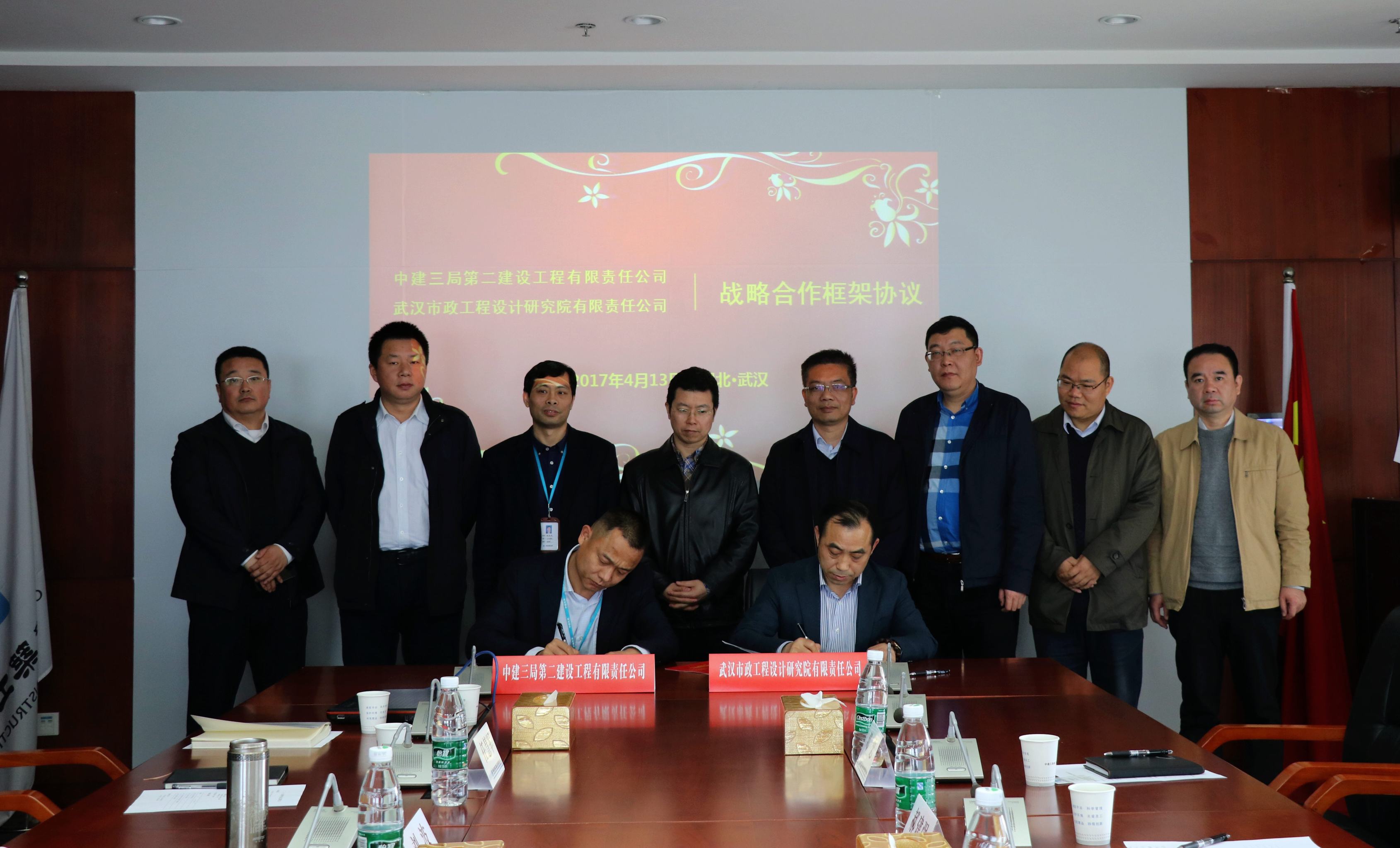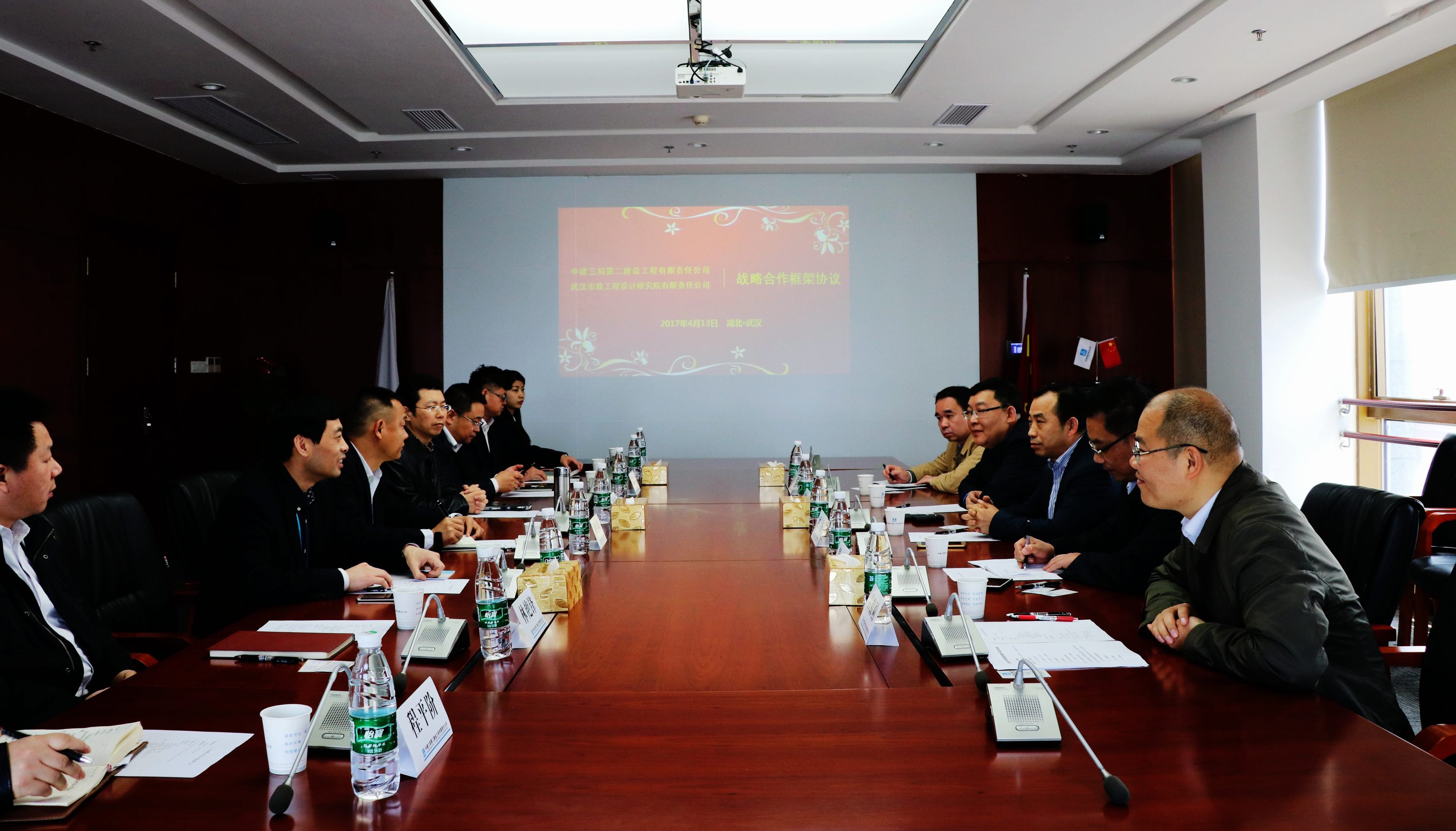 ??? 簽約儀式前,雙方舉行了簡短的會談,公司總經理姚華與中建三局二公司總經理劉自信分別對各自企業的基本情況進行了介紹。雙方一致認為,雙方在各自業務領域取得了突出的發展成績,并在業務范圍等方面具有很強的互補性。雙方期望以戰略合作簽訂為契機,強化雙方在相關領域的業務合作,實現資源共享,互利共贏。
