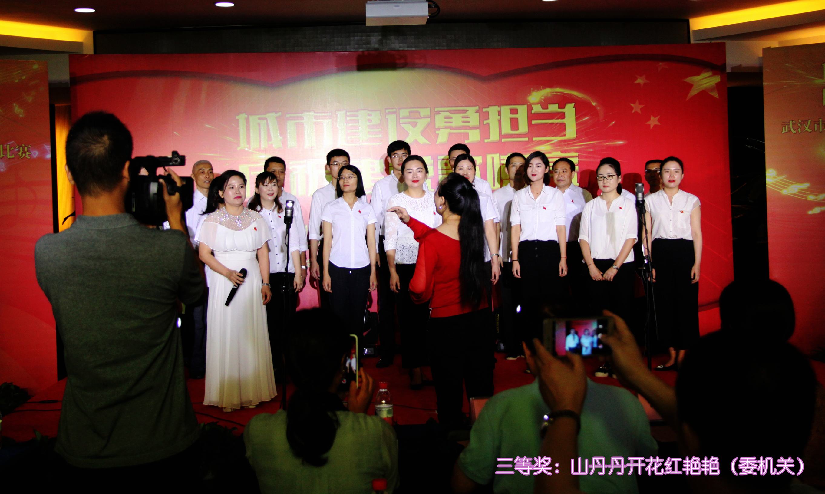 ??? 歌詠比賽在《瀏陽河》的悠揚歌聲中拉開帷幕,一首首紅色經典歌曲把觀眾的思緒拉回了那個紅色的年代:《沂蒙頌》、《紅軍不怕遠征難》、《我和我的祖國》,鏗鏘有力,蕩氣回腸;《長江之歌》、《映山紅》、《山丹丹開花紅艷艷》,旋律優美,婉轉抒情。參賽選手們飽滿的熱情和高水平的演唱,點燃了觀眾的熱情,現場氣氛熱烈,高潮迭起。