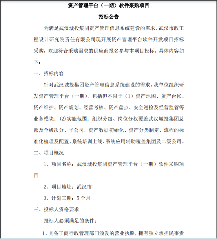 資產(chǎn)管理平臺(tái)(一期)軟件采購項(xiàng)目 招標(biāo)公告